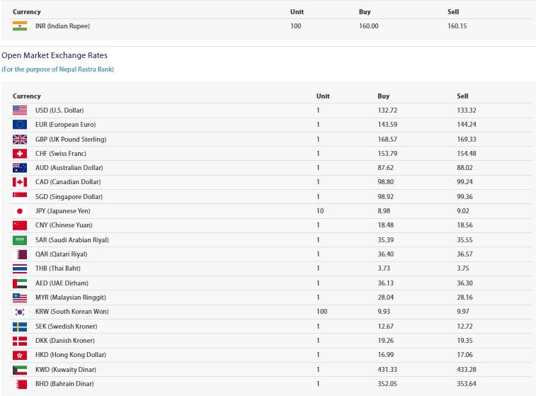 यस्तै, युरो एकको खरिद दर १ सय ४३ रुपैयाँ ५९ पैसा र बिक्री दर १ सय ४४ रुपैयाँ २४ पैसा रहेको छ । बेलायती पाउण्ड एकको खरिद दर १ सय ६८ रुपैयाँ ५७ पैसा र बिक्री दर १ सय ६९ रुपैयाँ ३३ पैसा रहेको छ । मंगलबार क्यानेडियन डलर एकको खरिद दर ९८ रुपैयाँ ८० पैसा र बिक्री दर ९९ रुपैयाँ २४ पैसा रहेको छ ।