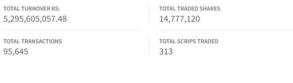 आज नेप्सेमा कुल ३ सय १३ कम्पनीको १ करोड ४७ लाख ७७ हजार १ सय २० कित्ता सेयर खरिदबिक्री हुँदा ५ अर्ब २९ करोड ५६ लाख ५ हजारमाथिको सेयर कारोबार भएको छ ।