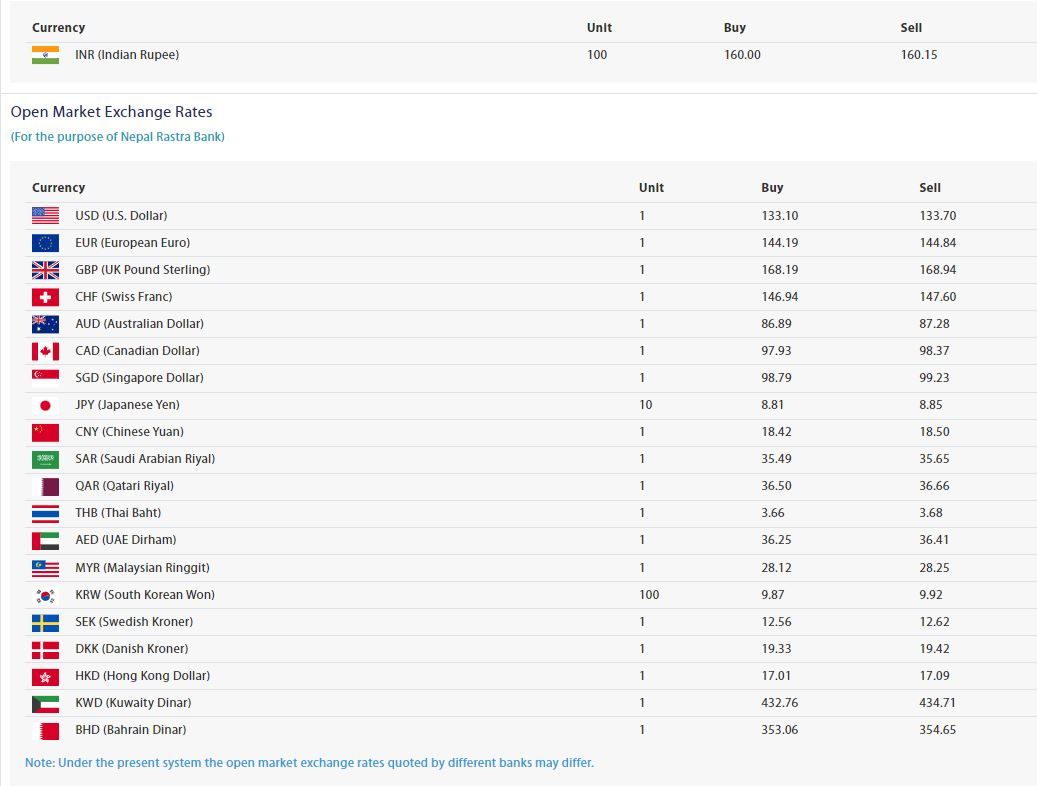 यस्तै, युरो एकको खरिद दर १ सय ४४ रुपैयाँ मुल्य १९ पैसा र बिक्री दर १ सय ४४ रुपैयाँ ८४ पैसा रहेको छ । आज बेलायती पाउण्ड एकको खरिद दर १ सय ६८ रुपैयाँ १९ पैसा र बिक्री दर १ सय ६८ रुपैयाँ ९४ पैसा रहेको छ ।