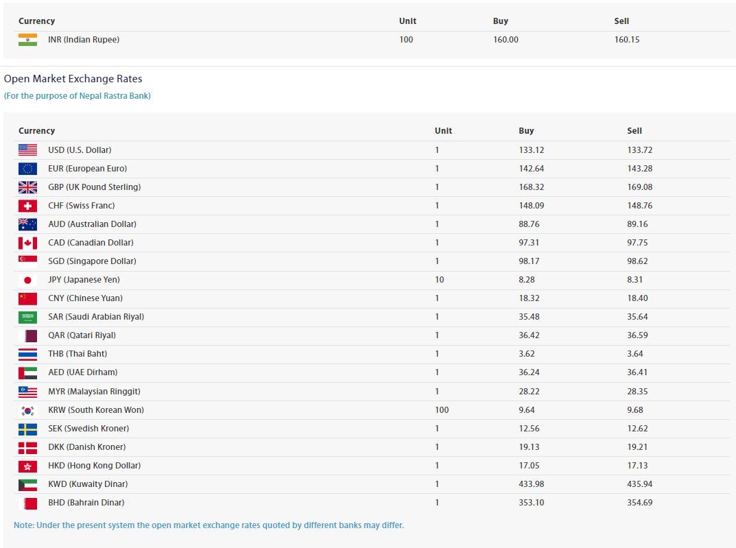 आज युरो एकको खरिद दर १४२ रुपैयाँ ६४ पैसा र बिक्री दर १४३ रुपैयाँ २८ पैसा रहेको छ । सोमबार बेलायती पाउण्डको खरिद दर १६८ रुपैयाँ ३२ पैसा र बिक्री दर १६९ रुपैयाँ ०८ पैसा रहेको छ ।