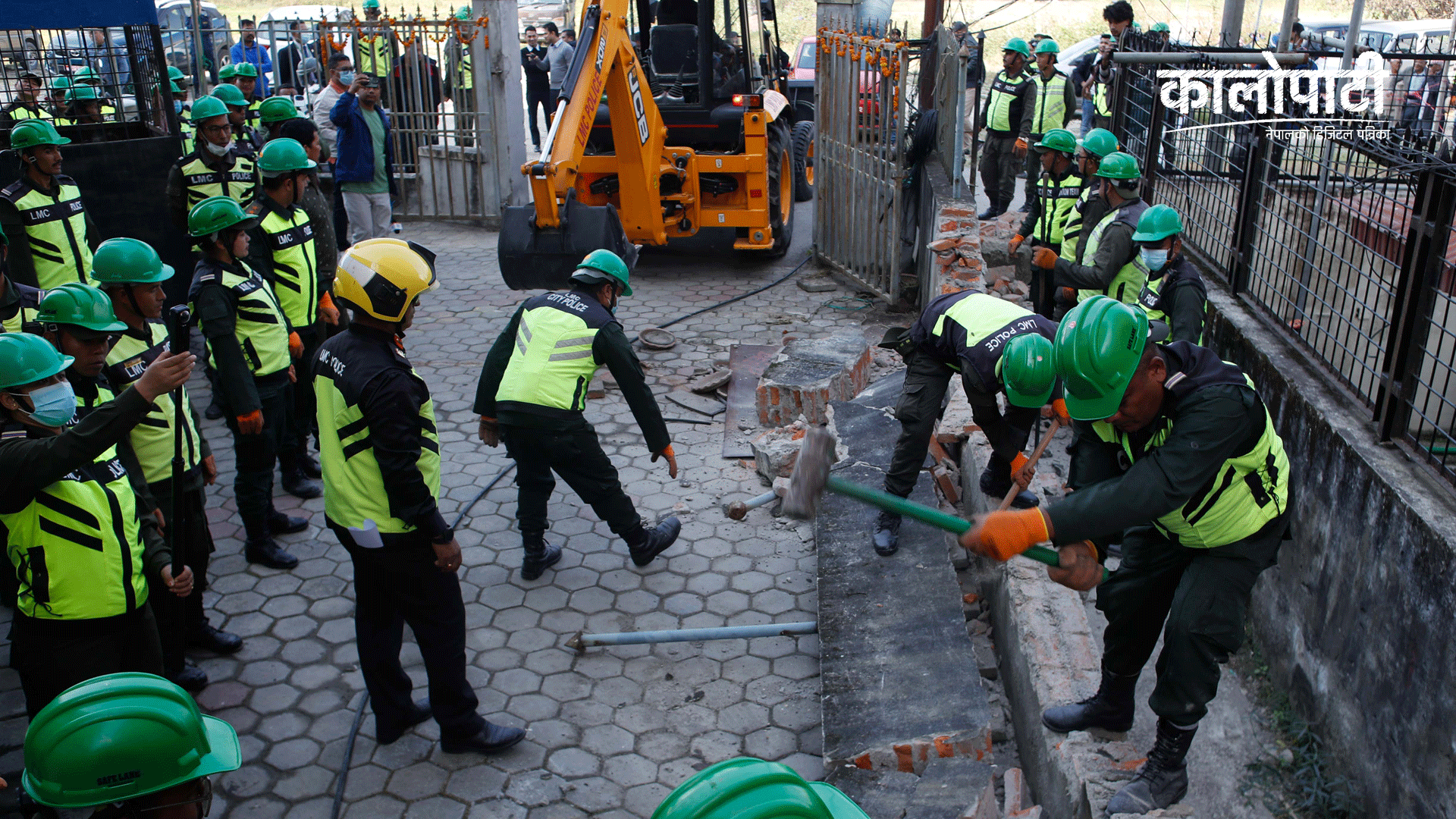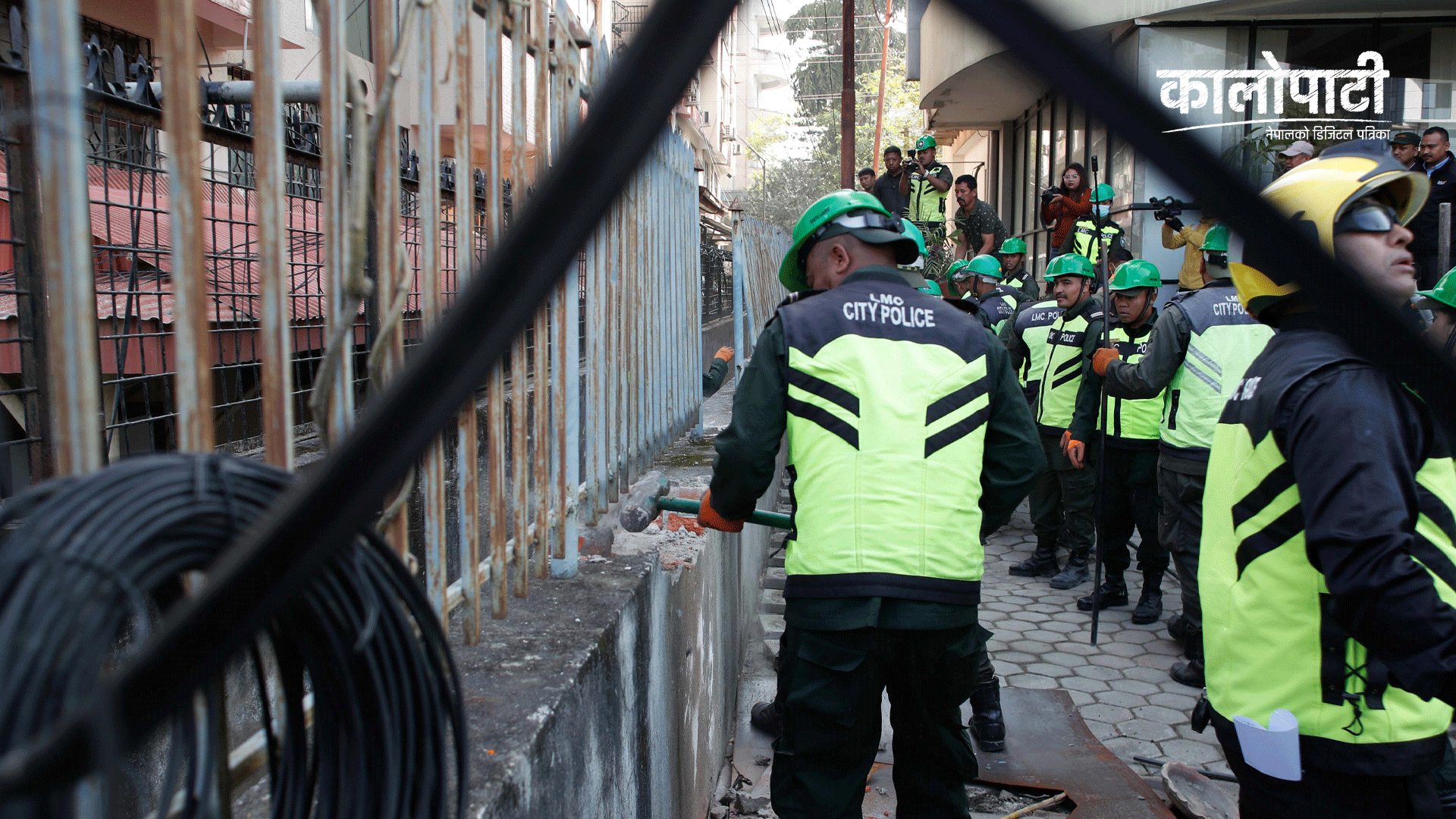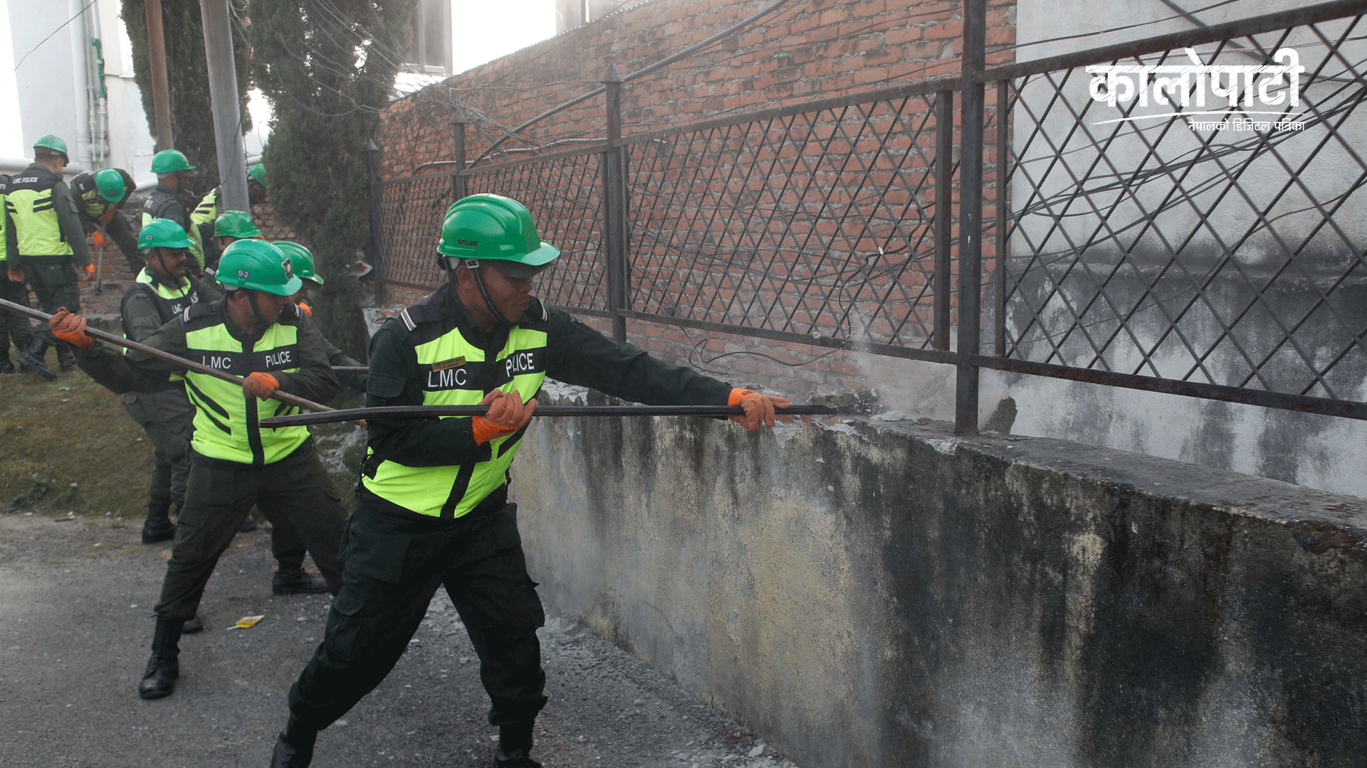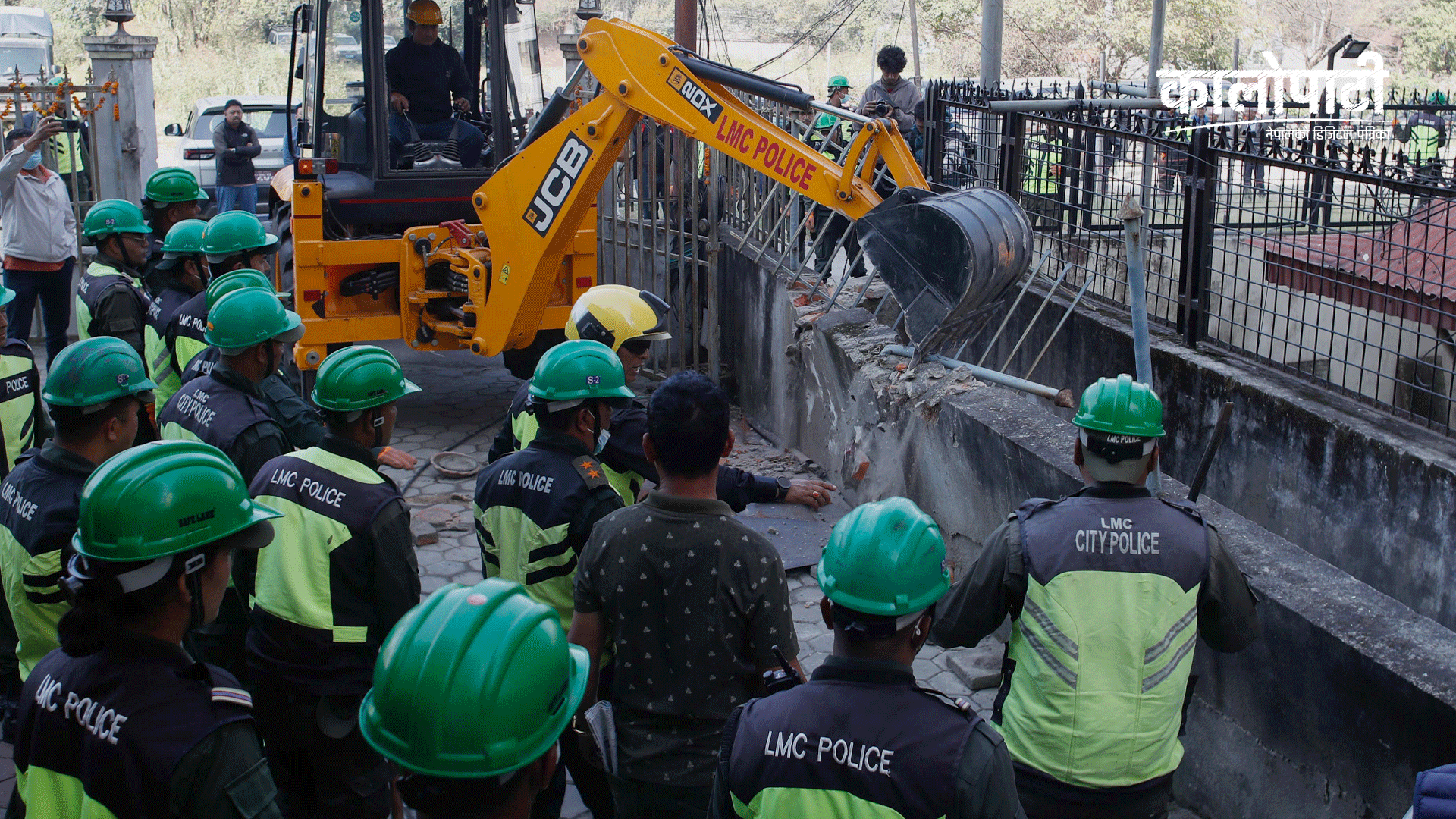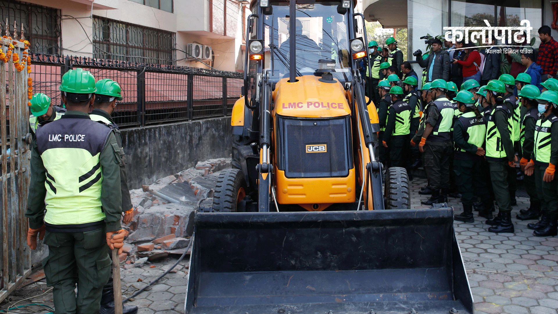 काठमाडौँ । ललितपुर महानगरपालिकाले हरिहर भवनस्थित राष्ट्रिय सहकारी विकास बोर्डको कार्यालय रहेको संरचनामा डोजर लगाएको छ। आइतबार महानगर प्रहरी प्रमुख सिताराम हाछेथुको नेतृत्वमा डोजरसहित पुगेको नगर प्रहरी टोलीले मापदण्ड विपरीत बनेका संरचनामा डोजर लगाएको हो। मापदण्ड विपरीतको सो संरचना भत्काउन अदालतले आदेश दिएसँगै ललितपुर महानगरले डोजर चलाएको हो । बाँकी तस्बिरमा हेर्नुहोस्…
