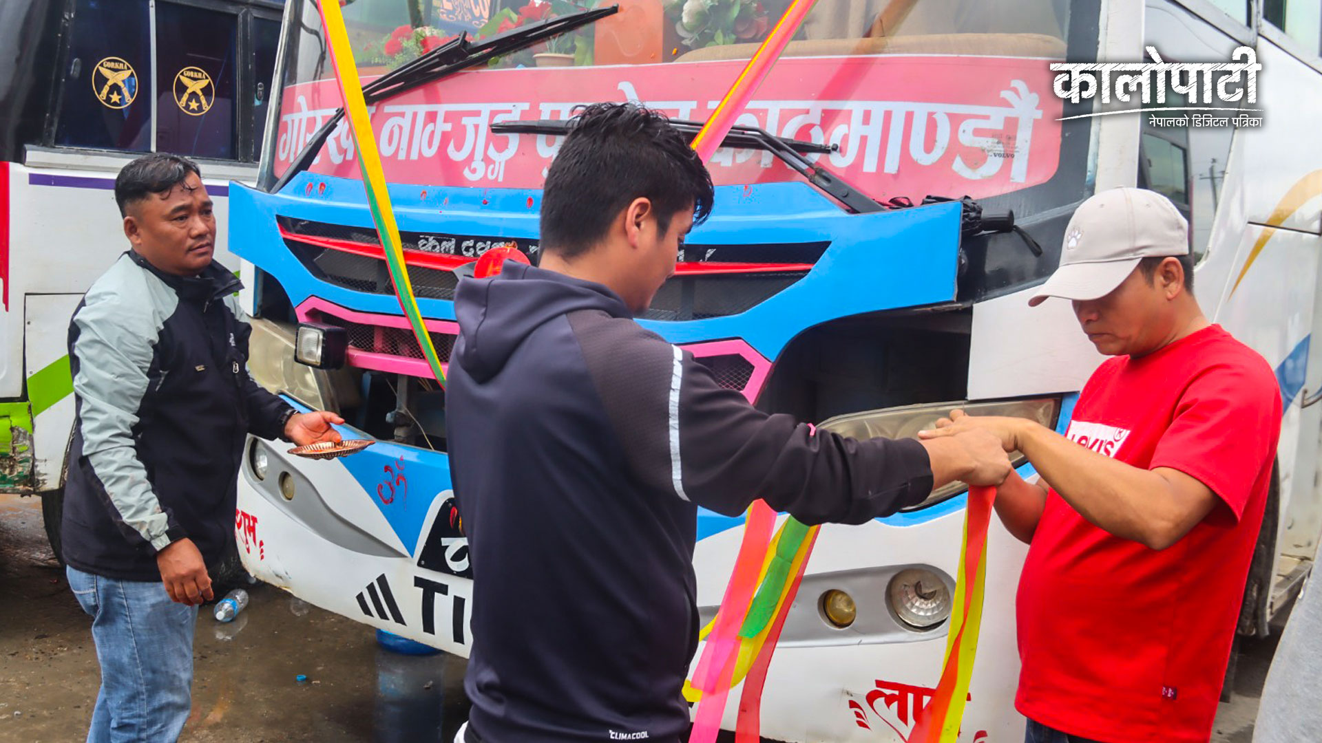 काठमाडौं । काठमाडौंको नयाँ बसपार्कमा सवारी साधनहरुको पूजा गरि विश्वकर्मा पूजा मनाइएको छ। हिन्दु धर्म अनुसार आजको दिन मेसिनरी, औजार र सवारीसाधनलाई सजाएर पूजा गर्ने चलन रहेको छ ।