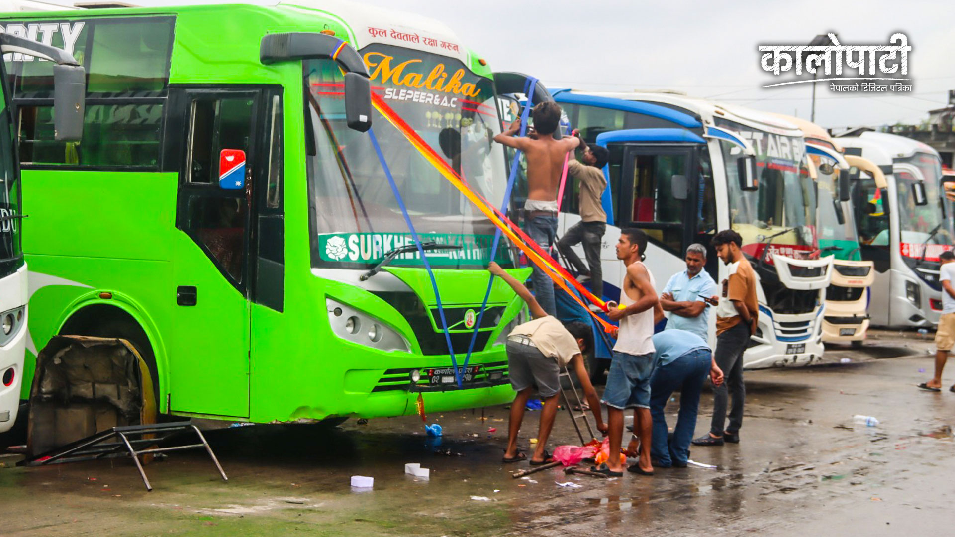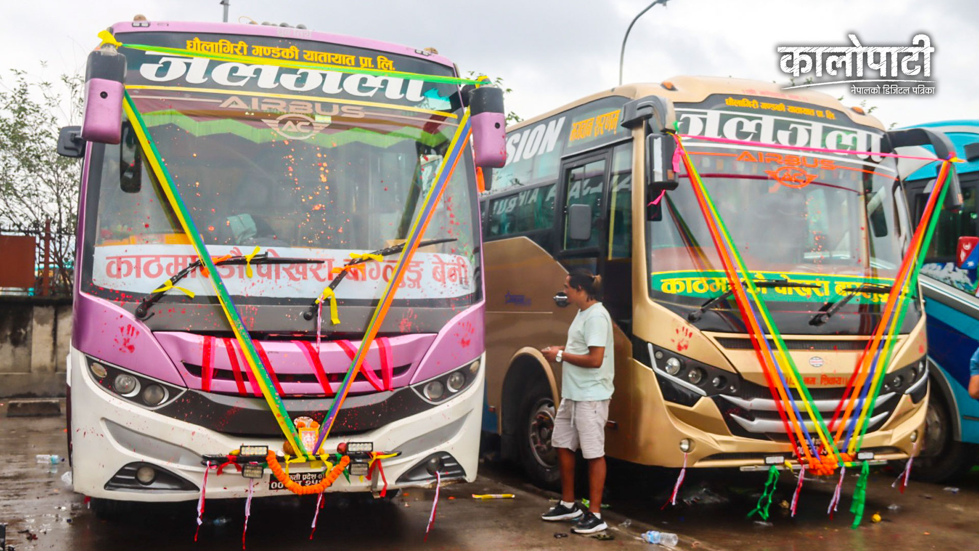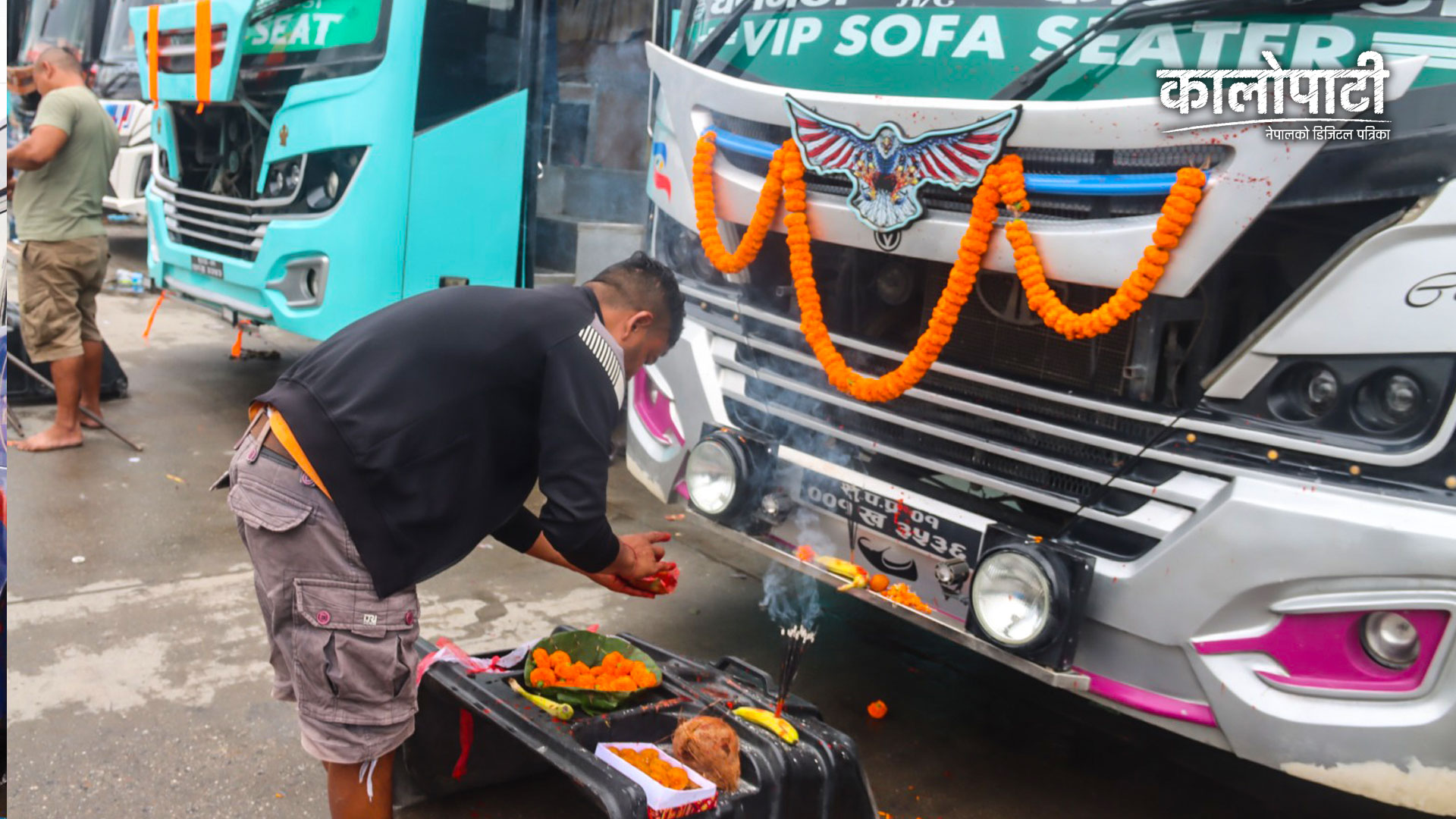 विश्वकर्मा पूजामा नयाँ बसपार्क सवारी साधनको रौनकले झलमल्ल (फोटो–कथा)