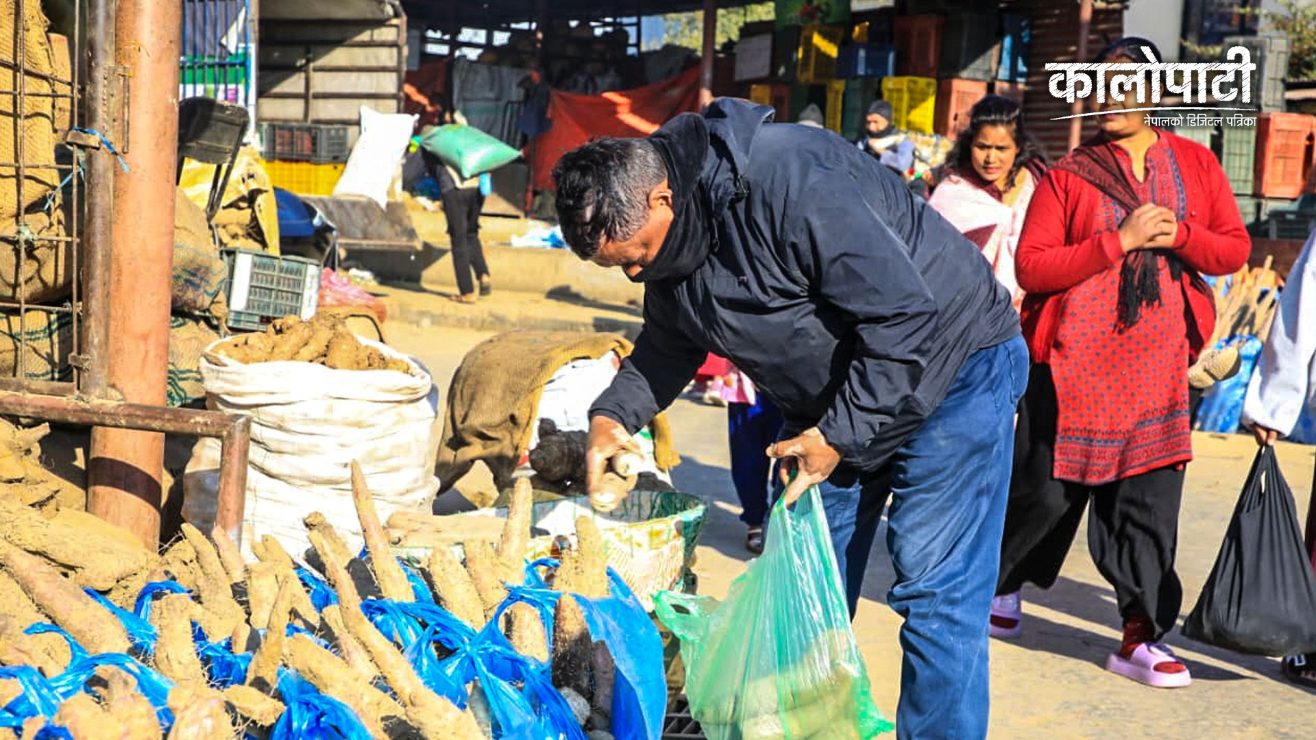 काठमाडौं । माघेसंक्रान्ति नजिकिँदै जाँदा उपत्यकाको प्रमुख तरकारी बजार कालीमाटी मा तरुल तथा कन्दमूल किन्ने उपभोक्ताको चहलपहल बढेको छ । पर्वलाई लक्षित गर्दै विभिन्न किसिमका तरुलहरू कालीमाटी तरकारी बजारमा किनबेच भइरहेका छन् ।