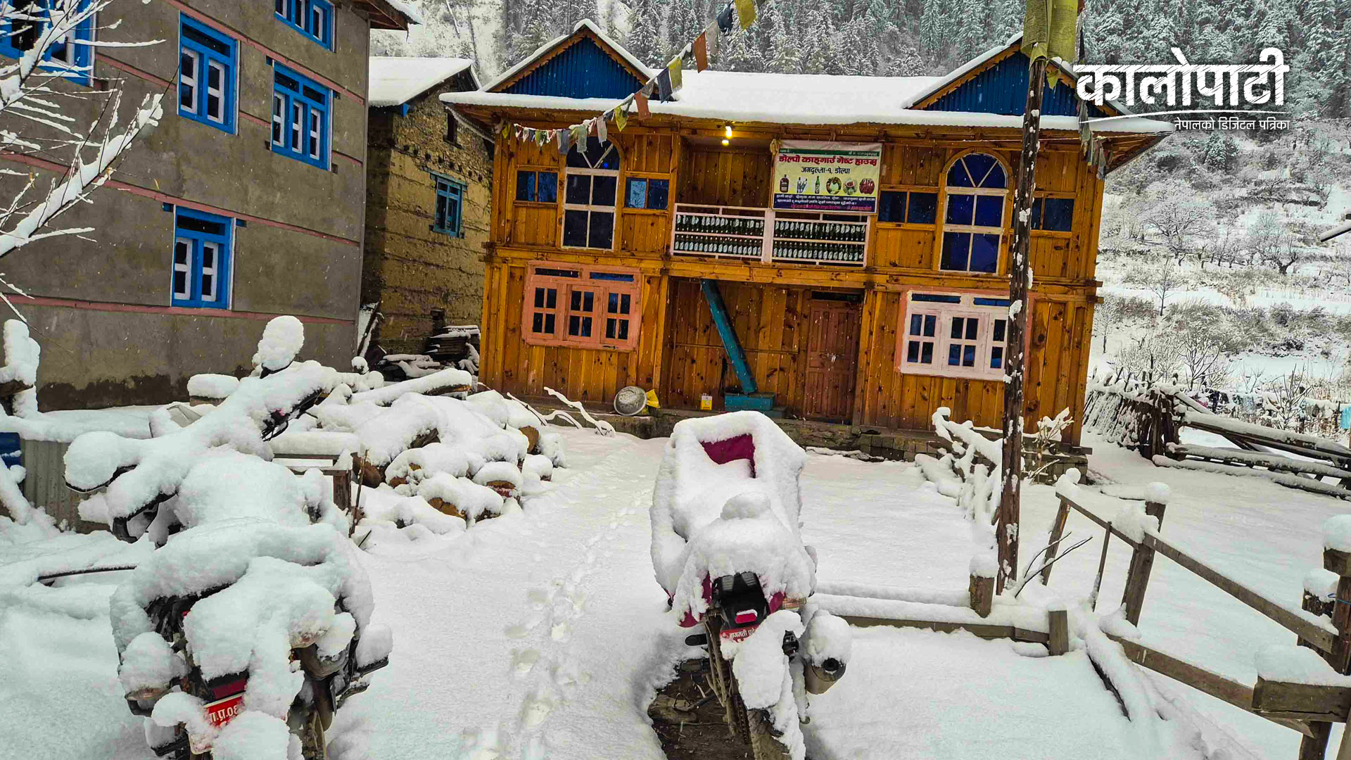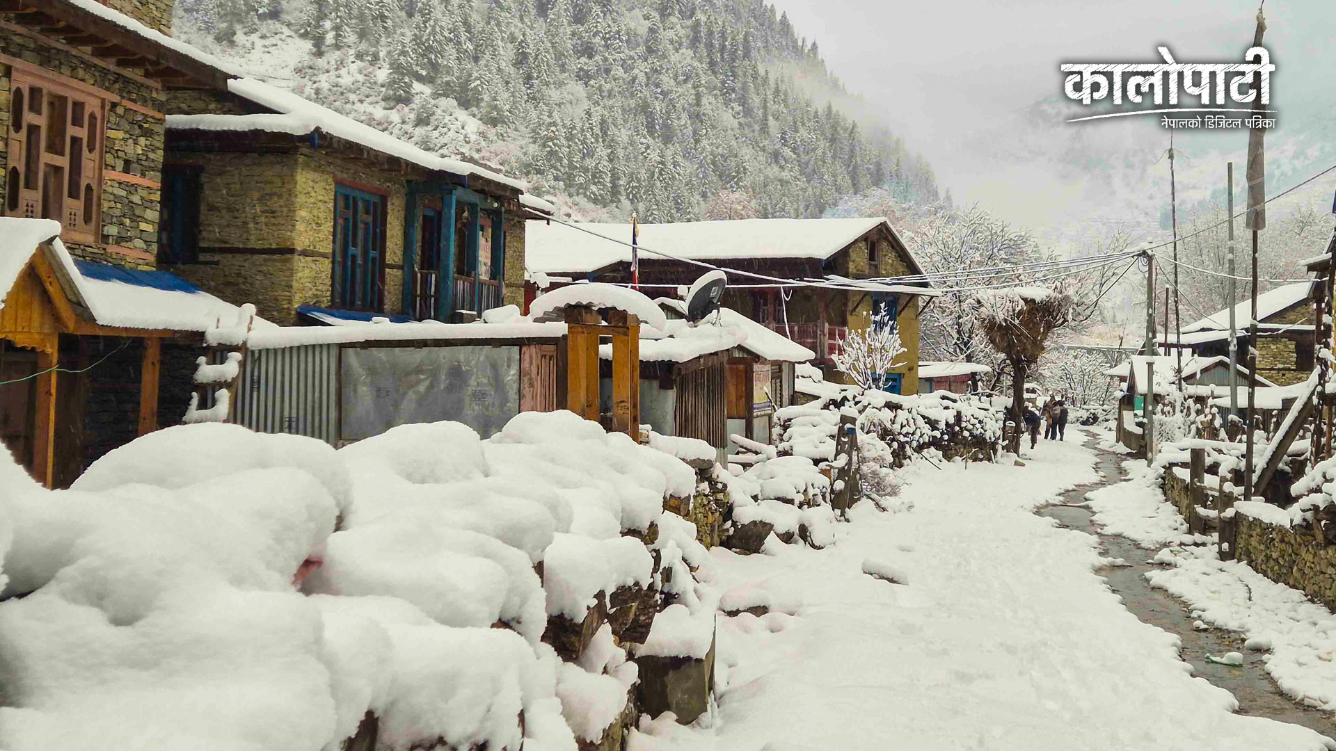 काठमाडौं । डोल्पाको काइगाउँमा शुक्रबारदेखि जारी भारी हिमपातका कारण जनजीवन प्रभावित भएको छ। शुक्रबार रातिदेखि निरन्तर हिमपात भइरहेकाले यातायातका साधनहरू ठप्प भएका छन् भने बाहिर आवतजावत गर्नसमेत कठिनाइ भएको छ।