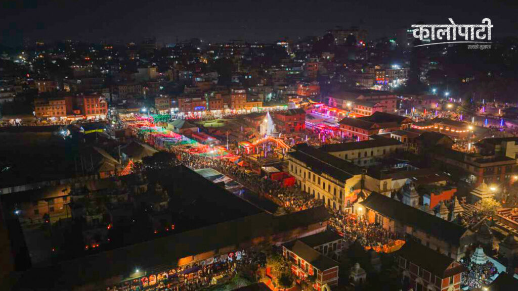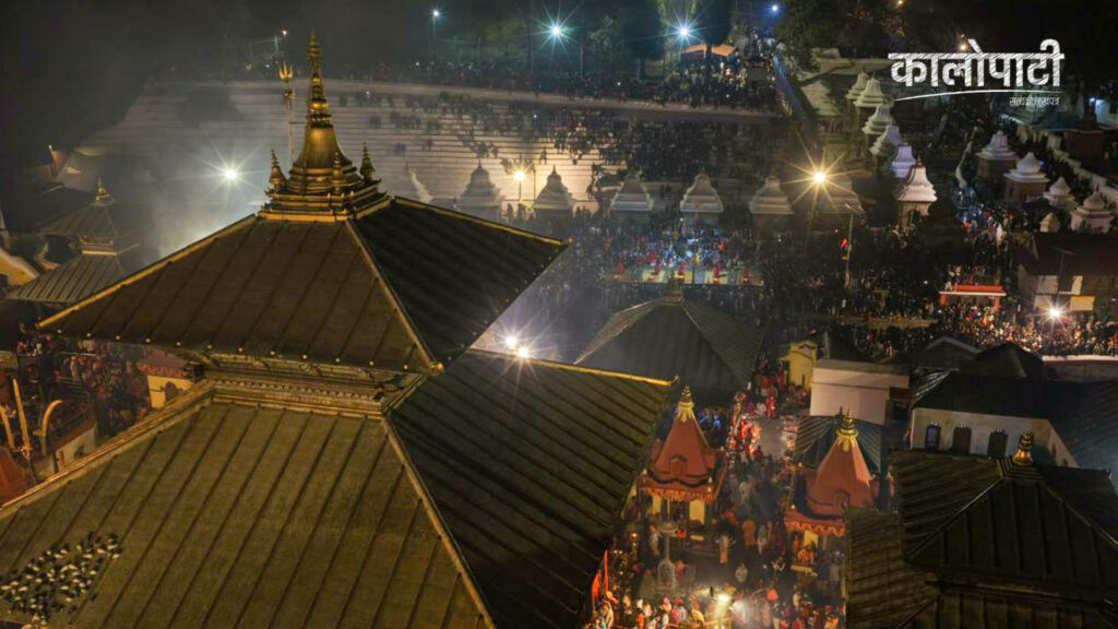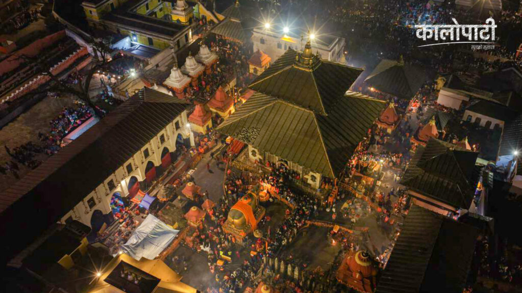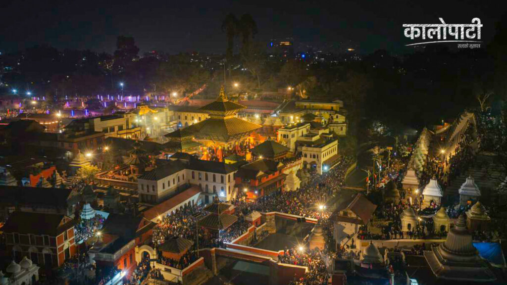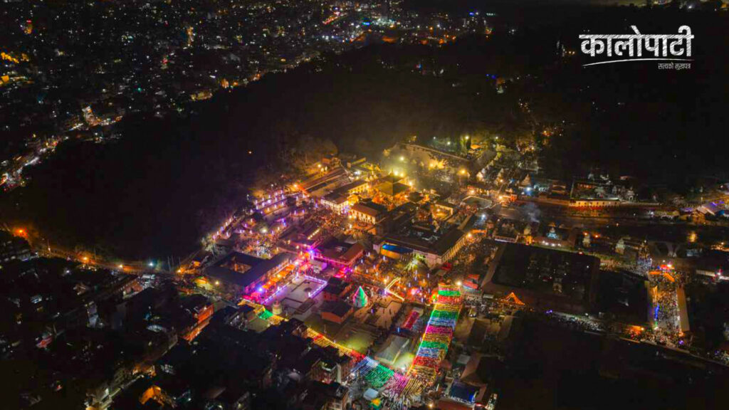 काठमाडौँ । महाशिवरात्रिको अवसरमा पशुपतिनाथ मन्दिर क्षेत्रमा भक्तजनको उल्लेख्य भीड देखिएको छ। रातभर दीप, बत्ती र आरतीले मन्दिर परिसर झिलिमिली बनेको थियो। ड्रोन क्यामेराबाट कैद गरिएको दृश्यमा पशुपति क्षेत्र भक्तिमय वातावरणमा डुबेको देखिन्छ।