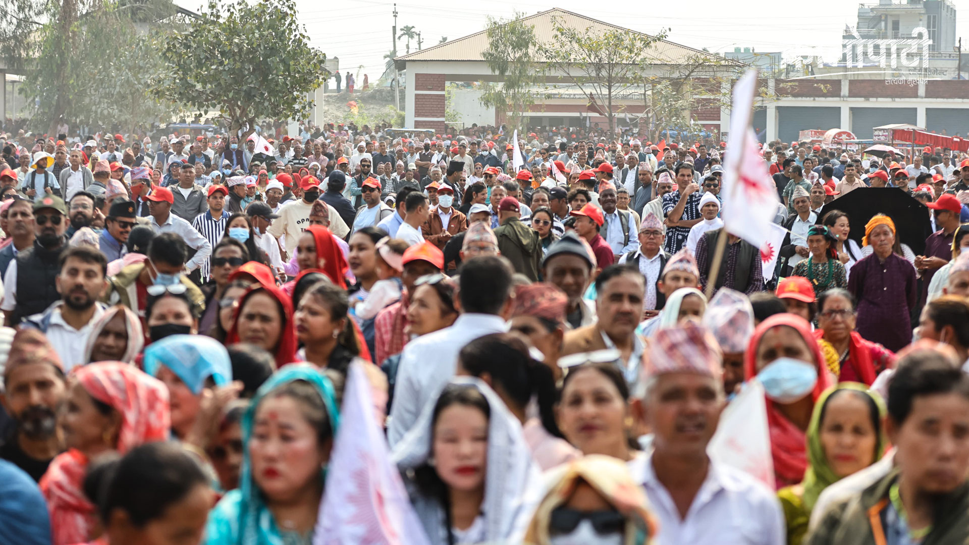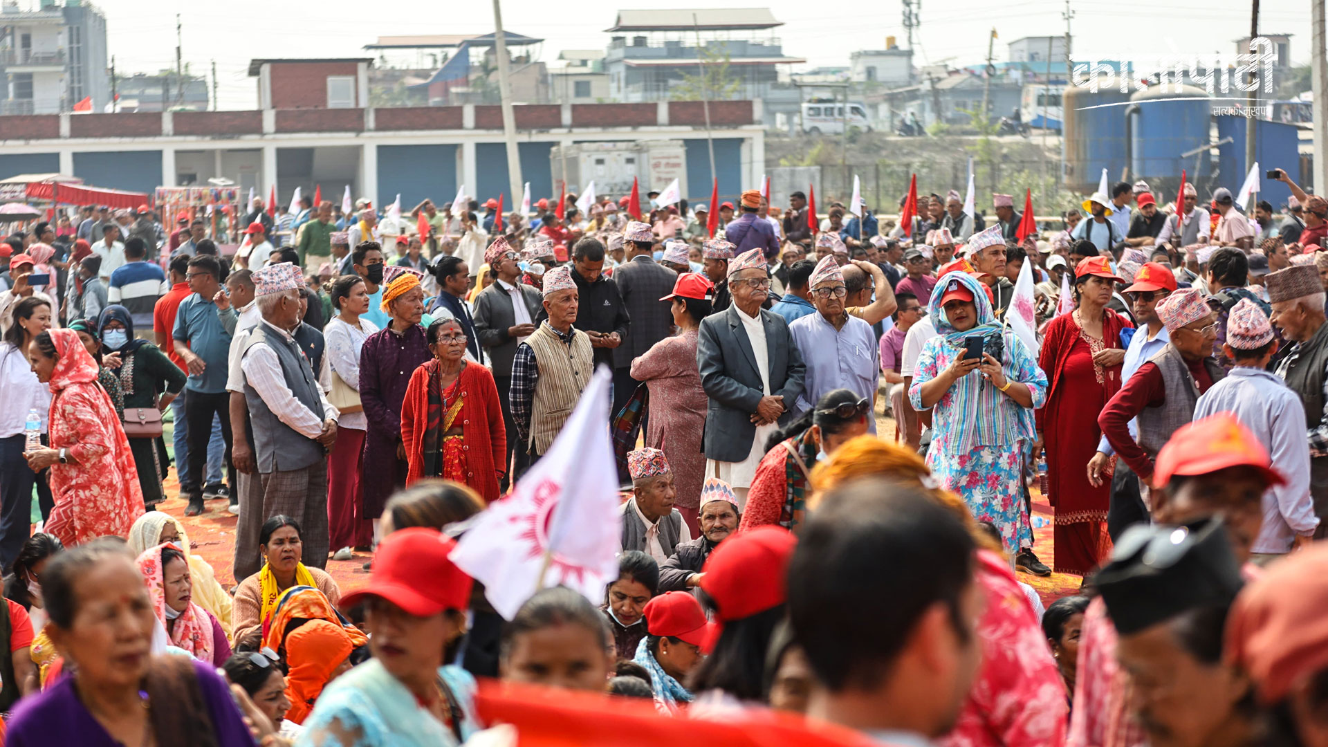 एमाले अध्यक्ष केपी ओलीको उपस्थितिमा नेशनल भोलेन्टियर फोर्स कोशी युनिफाइड कमाण्ड घोषणा सभा , दमक