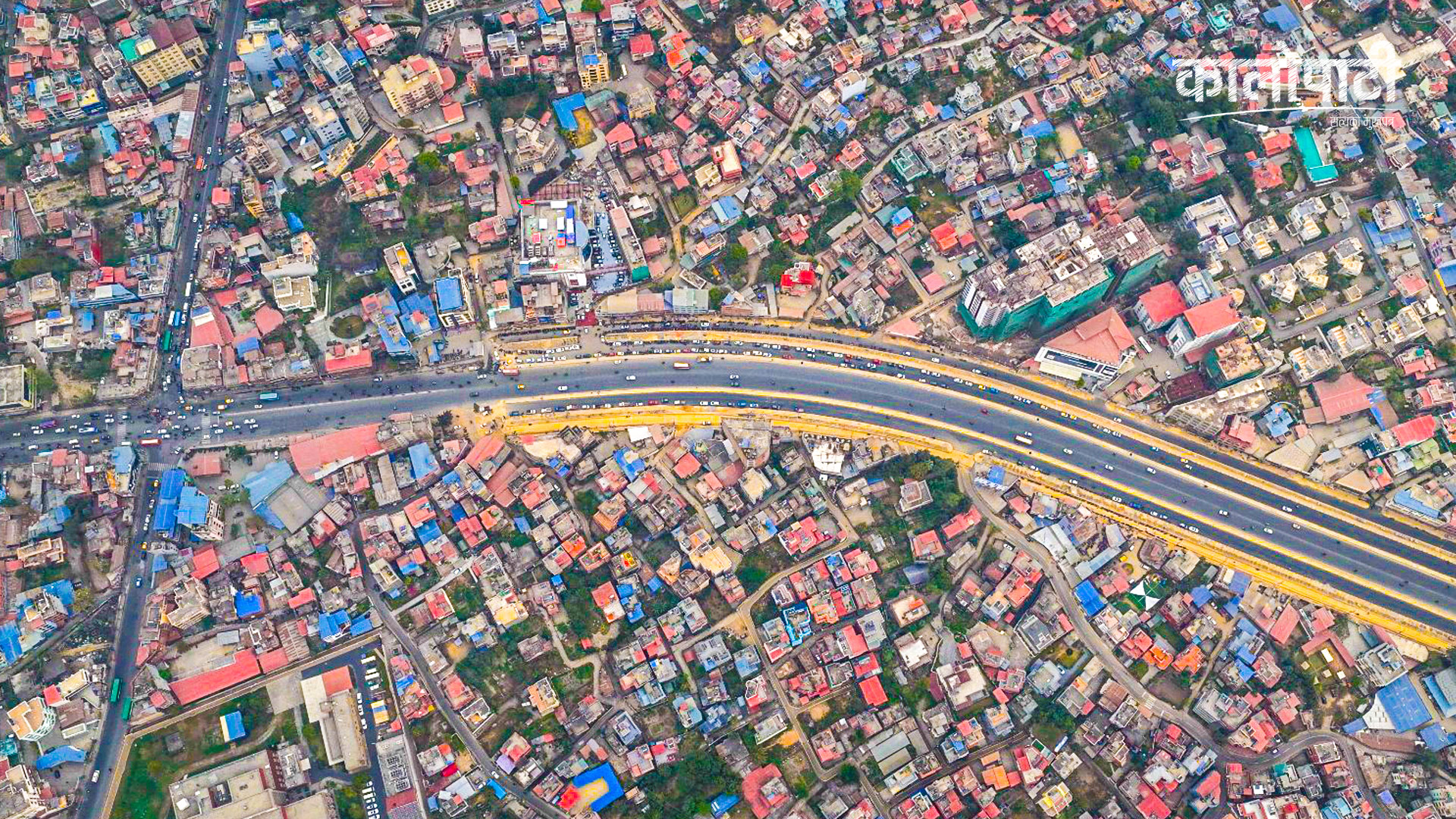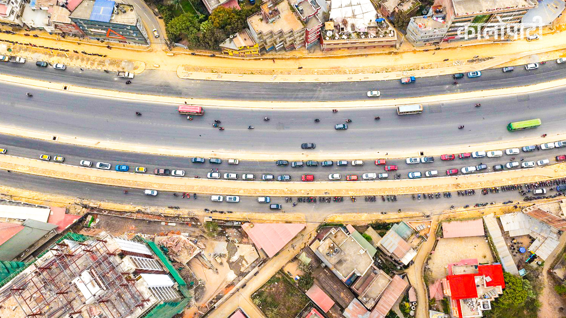 काठमाडौं । काठमाडौं उपत्यकाको चक्रपथ (रिङरोड) को विस्तारको काम धमाधम भइरहेको छ । २७ किलोमिटर खण्डमध्ये हाल कलंकीदेखि बसुन्धरासम्मको ८.२ किलोमिटर खण्डले नयाँ रुप पाइरहेको छ । बसुन्धरा क्षेत्रको आकाशबाट ड्रोन क्यामेरामाफैत कैद गरिएको दृश्य ।