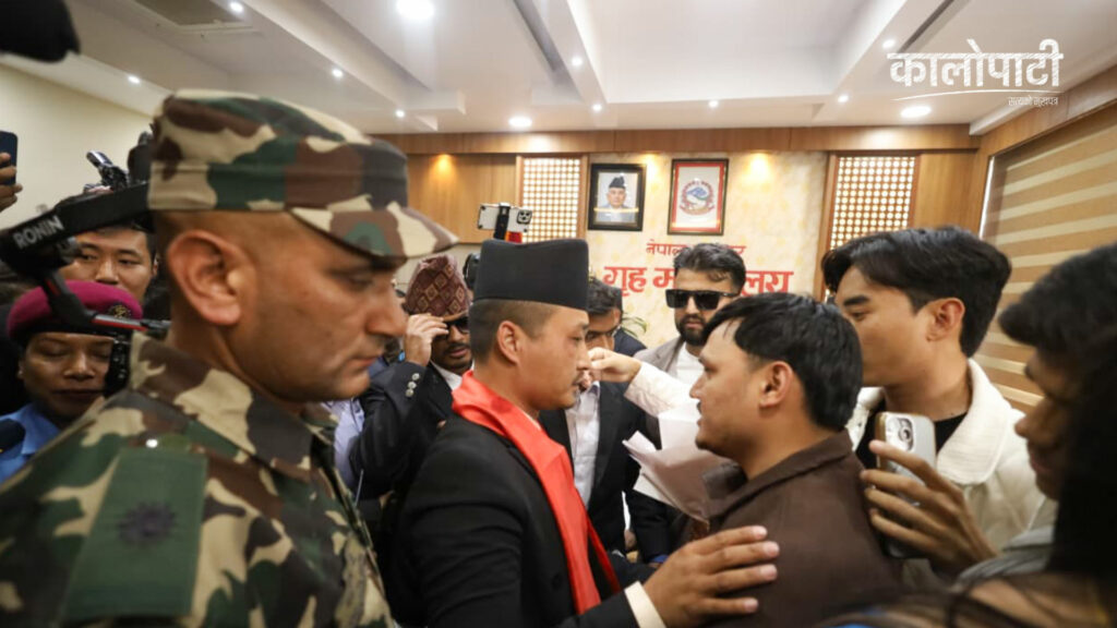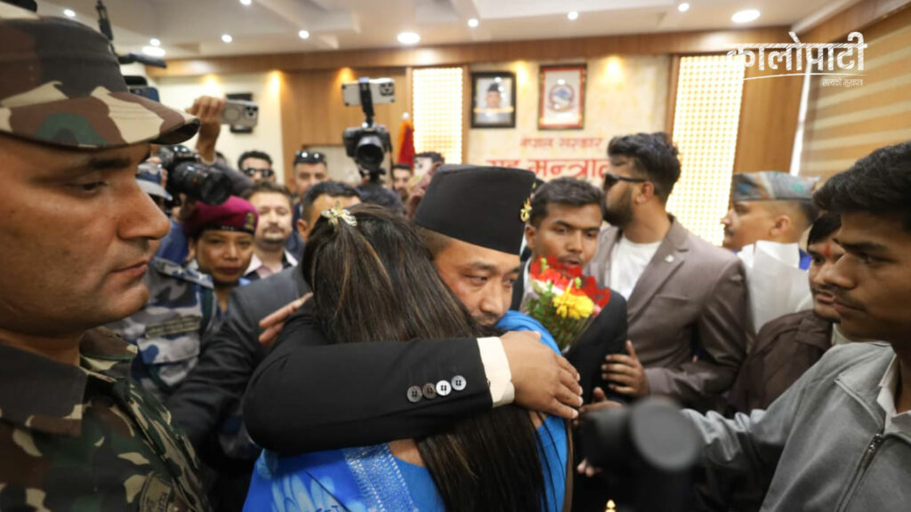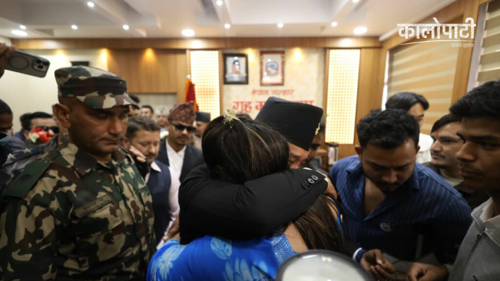 कालोपाटी १३ चैत्र २०८२, शुक्रबार १५:३५शुक्रवार मार्च 27, 2026 3:35 अपराह्न कालोपाटी २ घण्टा अगाडि काठमाडौँ । गृहमन्त्री सुधन गुरुङ्गलाई बधाई दिँदै सहिद परिवार र जेन जेड घाइते