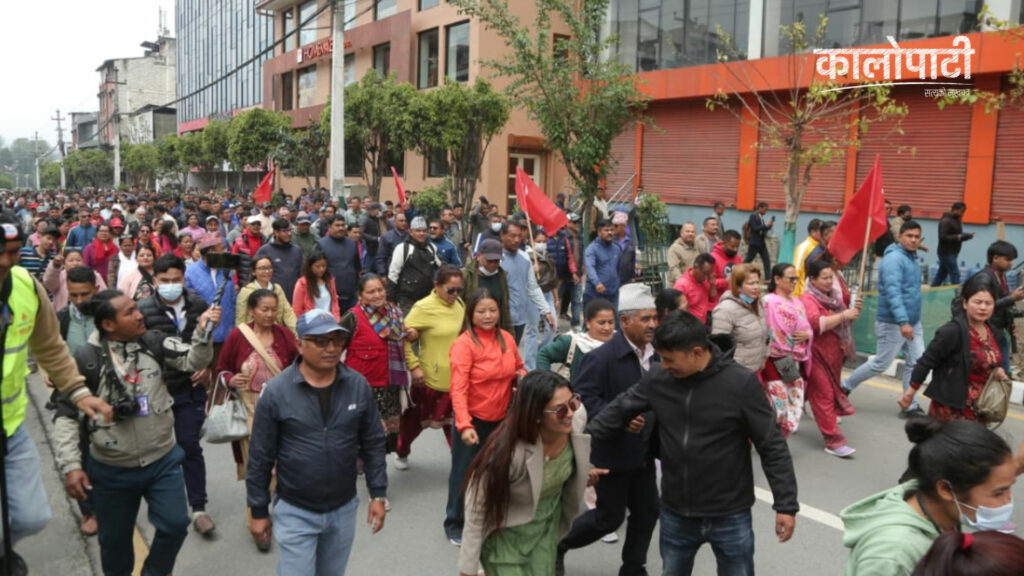 एमालेका जनवर्गीय संघसंगठले आईतवार माईतीघरमा प्रदर्शन गरेका हुन् ।