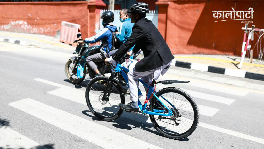 काठमाडौं । संसद्को पहिलो बैठकमा भाग लिन रास्वपाका सांसद आशिष गजुरेल साइकल चढेर सिंहदरबार पुगेका छन्। उनी भक्तपुरको लोकन्थलीबाट साइकलमा सिंहदरबार पुगेका हुन् ।