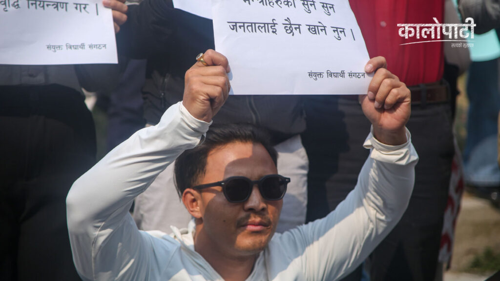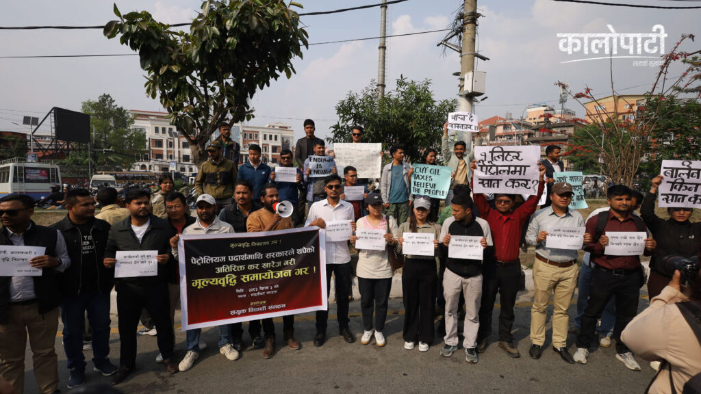 काठमाडौं । पेट्रोलियम पदार्थको निरन्तर मूल्यवृद्धिको विरोधमा संयुक्त विद्यार्थी संगठनले प्रदर्शन गरेका छन् ।