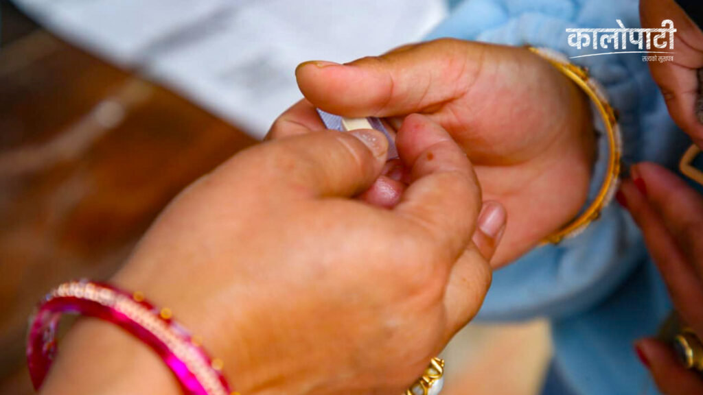 काठमाडौं । देशभरका बालबालिकालाई सरकारले वैशाख ६ र ७ गते भिटामिन ‘ए’ र जुकाको औषधि खुवाइँदै छ । यही कार्यक्रम अन्तर्गत पाटनको मंगलबजारमा बालबालिकालाई भिटामिन ‘ए’ र जुकाको औषधि खुवाइँएको छ ।