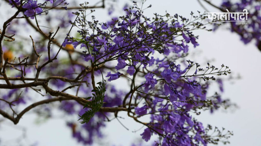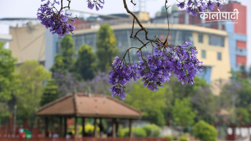 काठमाडौँ । राजधानी काठमाडौंका मुख्य सडकहरू यतिबेला ज्याकाराण्डा फूलले निलाम्य बनेका छन्। बैशाख महिनामा फुल्ने यी आकर्षक फूलहरूले सहरको सौन्दर्य थप बढाएका छन्।