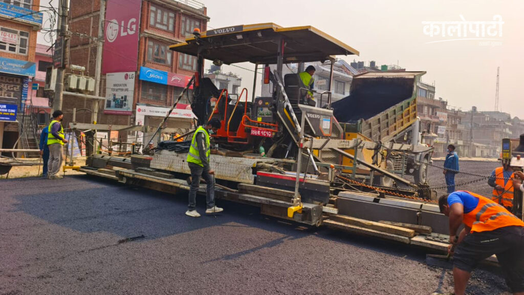 भक्तपुर । भक्तपुरको सूर्यविनायक–जगाती सडकखण्डमा कालोपत्रे गर्ने काम तीव्र गतिमा अघि बढाइएको छ। पछिल्लो समय सडक स्तरोन्नतिको कामले गति लिएको छ ।