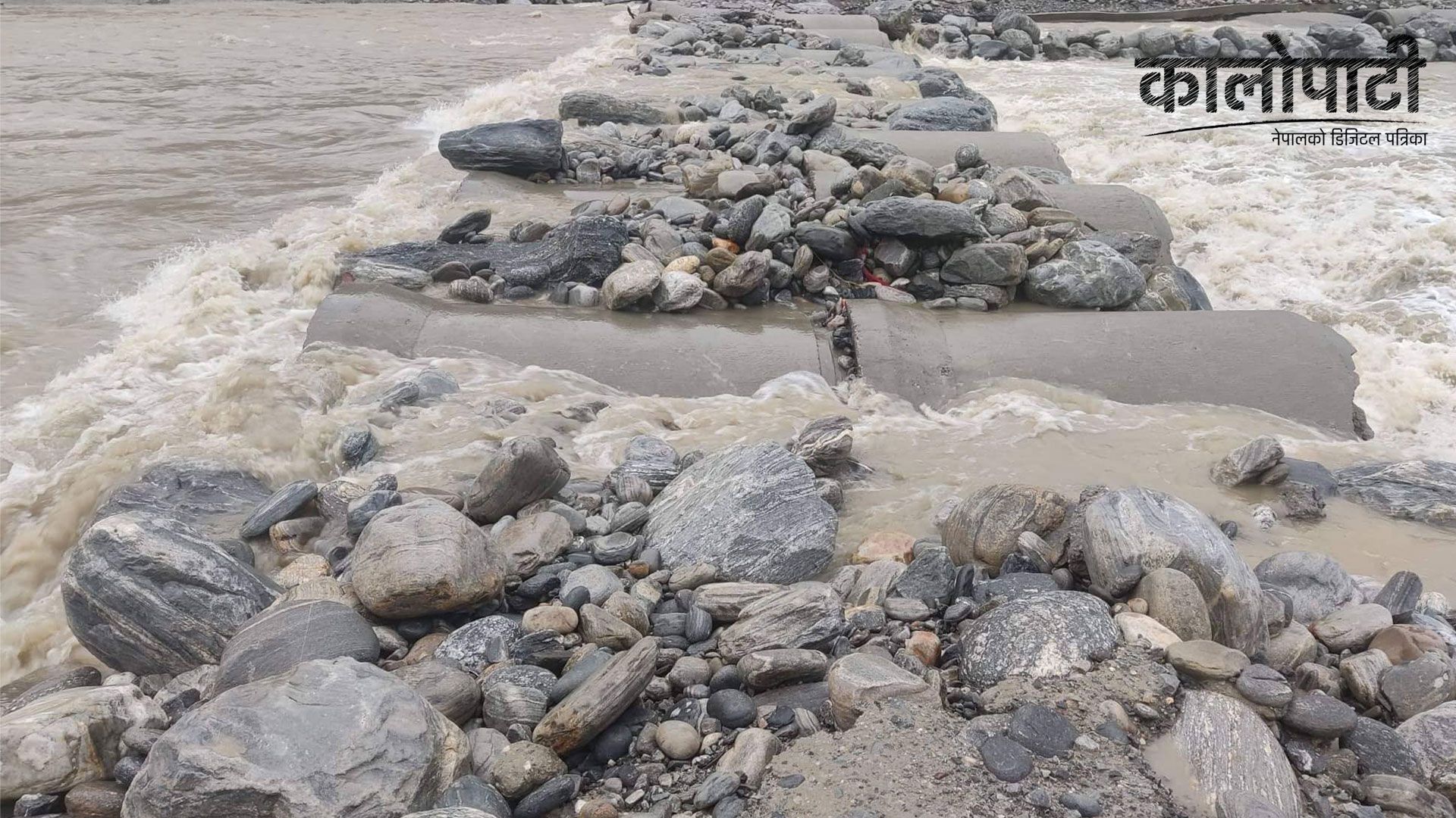 मेलम्चीको अस्थायी पुलमा क्षति हुँदा यातायात अवरुद्ध, बाहुनेपाटीको पुलको प्रयोग गर्न आग्रह