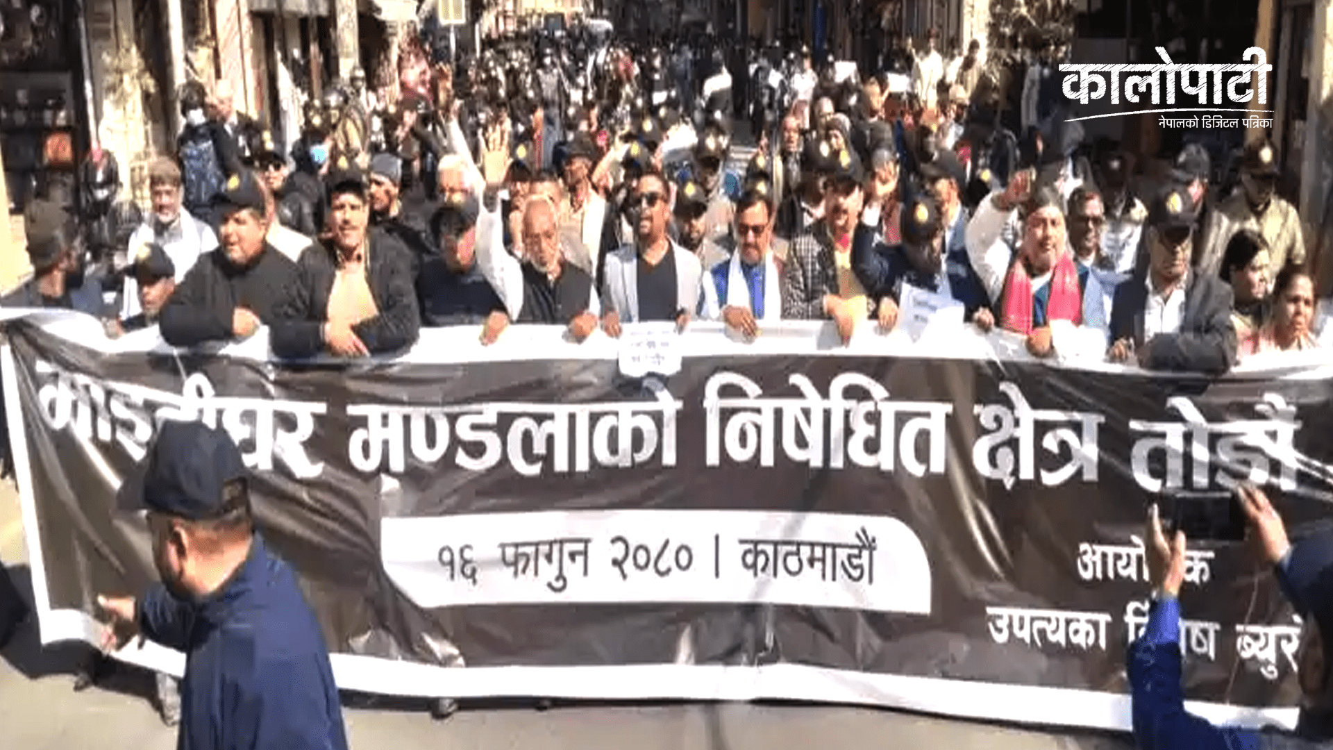निषेधित क्षेत्र तोडौँ भन्दै राजेन्द्र महतो ब्यानरसहित माइतीघर मण्डलामा