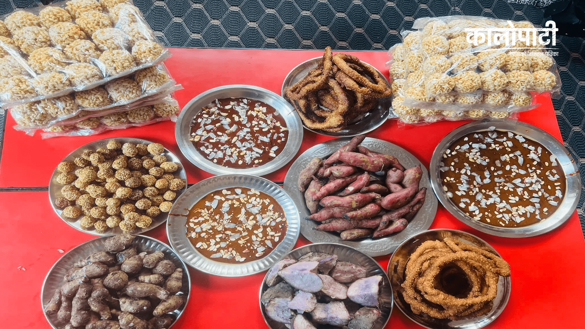 चेलीलाई कोसेली दिएर माघे सङ्क्रान्ति मनाउँदै