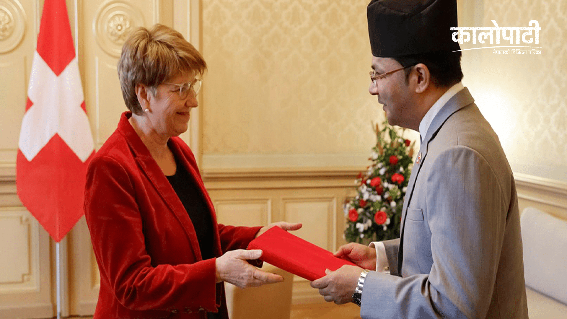 स्विस महासंघका लागि नेपाली राजदूत सुवेदीद्वारा ओहोदाको प्रमाणपत्र प्रस्तुत