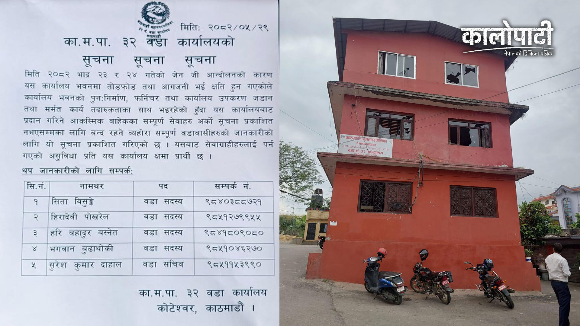 काठमाडौं महानगर ३२ वडाको सेवा अस्थायी रुपमा बन्द